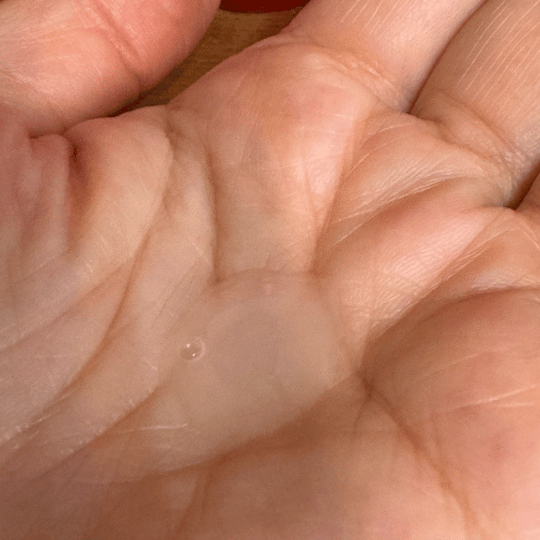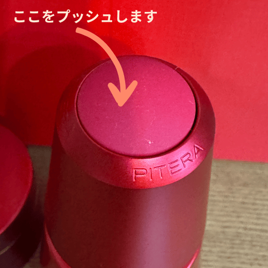 ここをプッシュしたら一回分のエッセンスが出てきます。30mlでちょうど1ヶ月分となっています。ひっくり返しても出てこないそうですよ!
