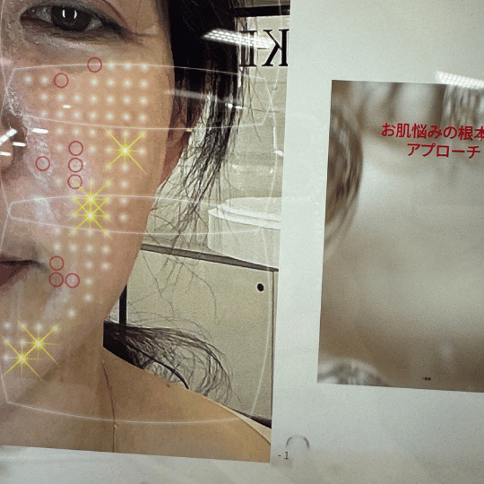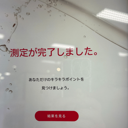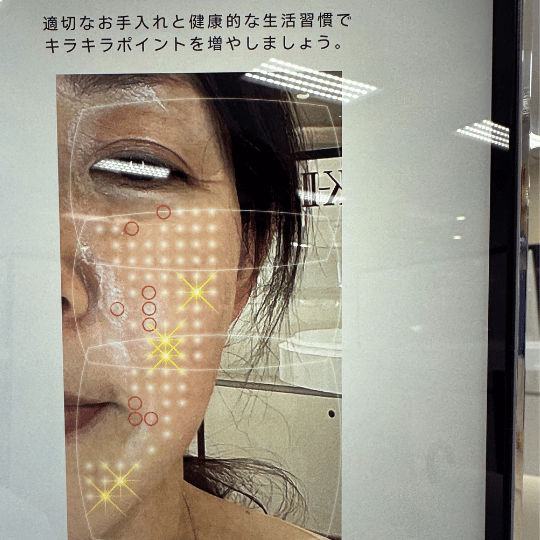 キラキラしているところはお肌の状態が良いところみたいです。キラキラポイントは前回の肌診断よりは増えているようでした。