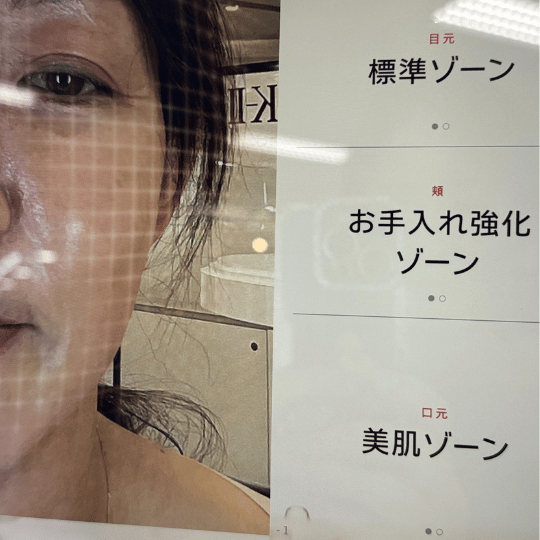 今回の結果は、目元は標準、ここがお手入れ強化ゾーン、口元は美肌ゾーンでした。