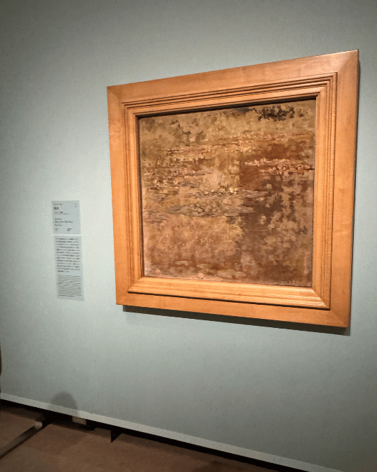 この作品は、モネの晩年 1916年の作品で、『第一次大戦の渦中にあり、人々が苦しみ命を落としている中で、形や色の些細なことを考えるのは恥ずべきかも?しかし、この悲しみから逃れる唯一の方法なのです』と彼にとって睡蓮の制作が精神的な避難所で平和への願いでもあったことが伺えます。