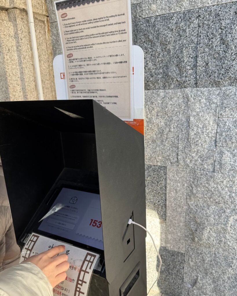 人気店あるある!こちらでウェイティングします。日本語で大丈夫でした。12月21日日曜日の14時ごろ、36組がウェイティングでしたが、待ち時間は30分ほどでした。