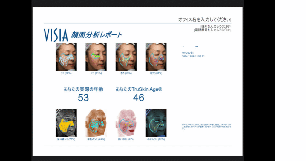 パウダールームでお化粧をオフし、肌診断機VISIA撮影
