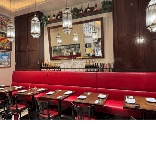 赤が基調のインテリアで、パリを訪れた気分が味わえます!外国人スタッフさんが気さくで、食事内容を丁寧に日本語で説明してくださいました。