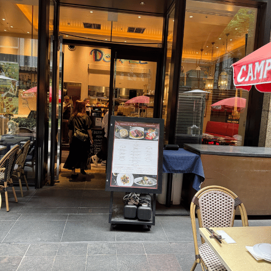丸の内は素敵なお店が軒を連ねて、たくさんの人で賑わいを見せています。新丸ビルの裏側に位置するBISTRO DOUBLE、赤色のパラソルが目印です!。これからの季節はテラス席がおすすめ!ゆったりと笑談、ランチが楽しめますね!