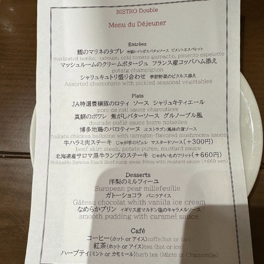 こちらは、BISTRO DOUBLE のスペシャリテコース”極み”