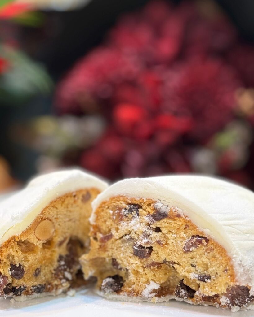 洋酒に漬けた(レーズン・イチジク・レモンピール・クランベリー・オレンジピール)と丸ごとアーモンドがたっぷり入っていて、ずっしりしっとりして美味しいです。ただ、薄く切った方がいいと聞いたのだけど上手に切れないポンコツなhanakoでした。Paulのシュトーレンも美味しいですが、より爽やかで重たくなく美味しい気がします。