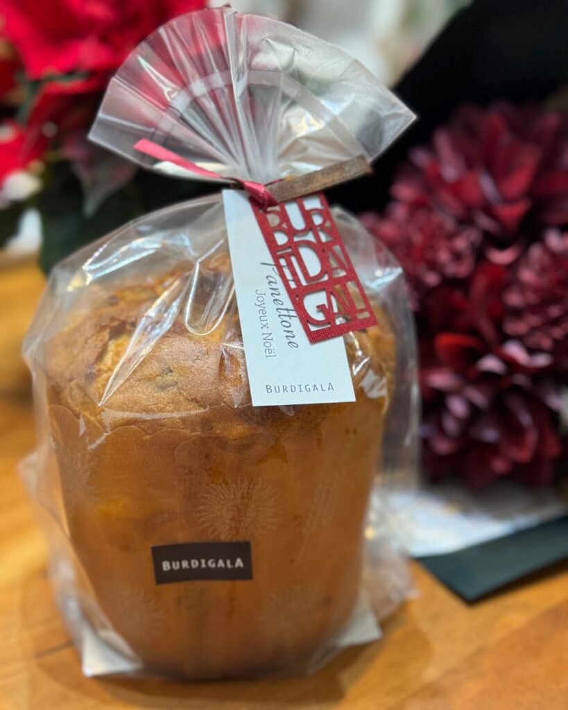 ブルディガラのパネトーネは、オリジナルヨーグルト種、レーズン種を使い、発酵バターをふんだんに混ぜ込んでいます。そのため、とてもしっとりとしているのが特徴。洋酒に漬けたレーズンやサルタナレーズン、そしてオレンジ、レモンの柑橘類も加わり、フルーティに仕上げてあります。年に一度のこの季節だけのお楽しみをぜひお楽しみください!