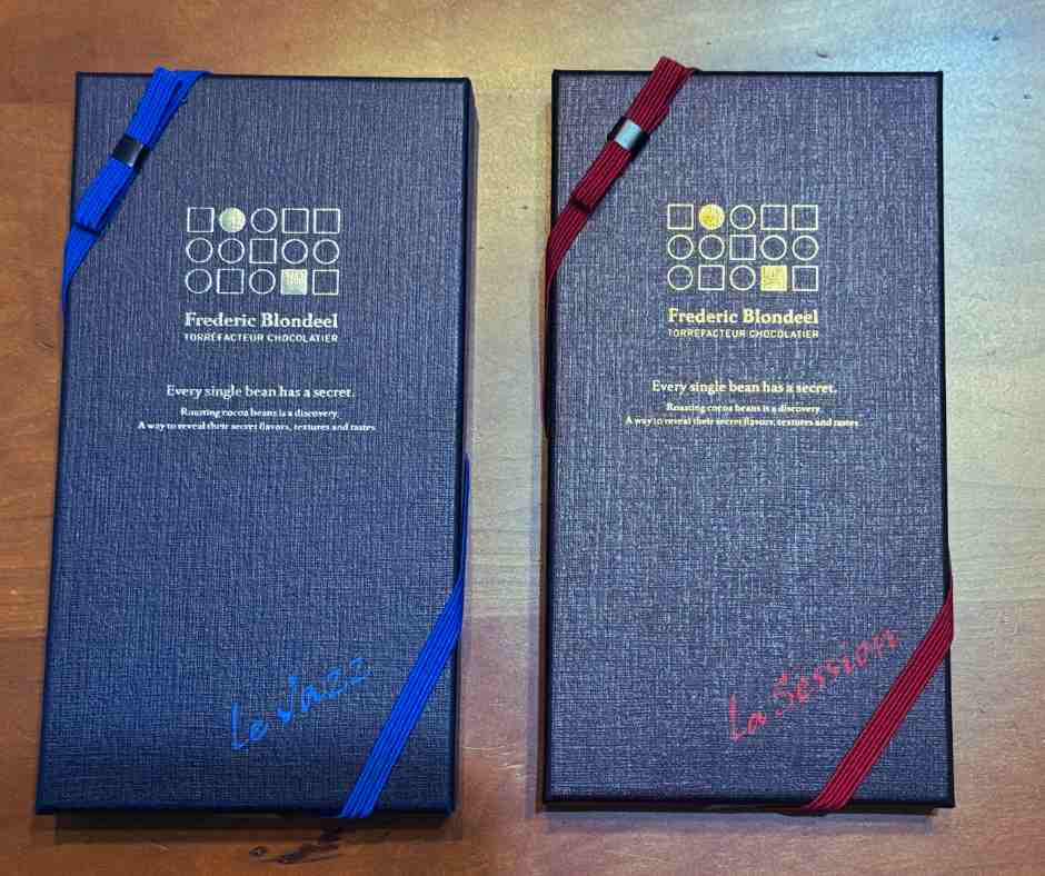 左側のブルーが、ハイカカオ食べ比べのマリアージュタブレットLe Lazzと右側が新作のLα Session です。