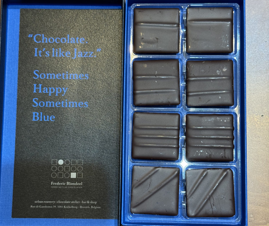 4枚目は、ガーナ共和国産カカオ70%のショコラにクラッシュしたコーヒー豆をブレンドした一品で、F.ブロンディールの家業であるコーヒー焙煎の歴史に敬意を表したスペシャリテです。