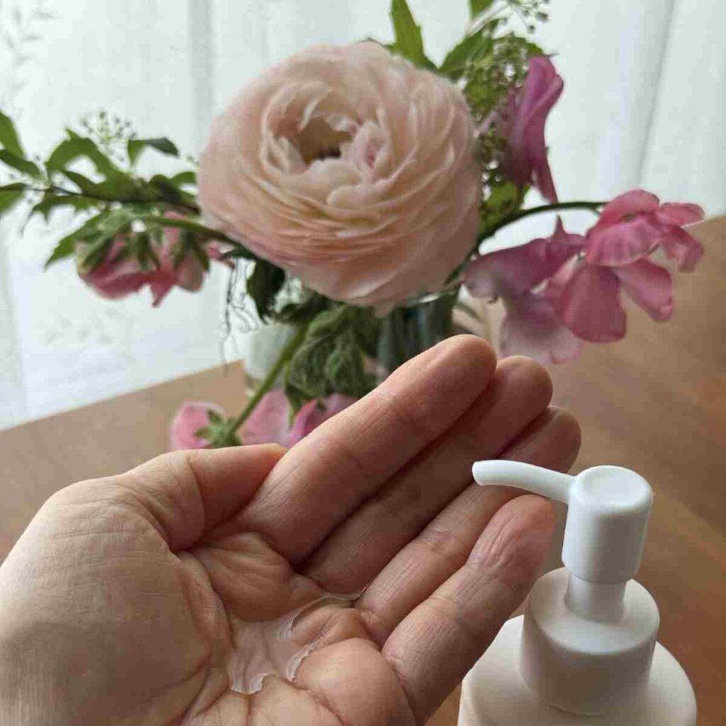 洗顔後化粧水の前にワンプッシュ!優しくお顔と首までなじませます。
