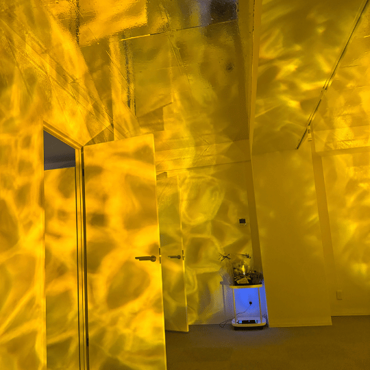 扉の中はこんな感じです。深海のイメージなど曜日によって違うらしいです。ヒーリングミュージックが流れていました。オープンしたてでペンキの匂いがしました。