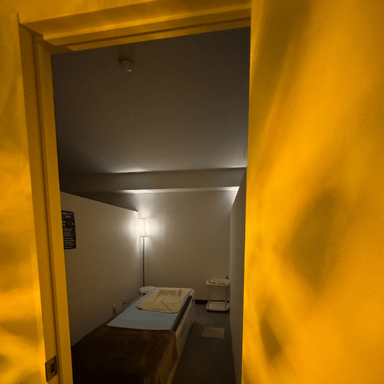ウォーターベッドは2台。リクライニングチェアが4台。簡単なカウンセリングをして入室します。着替えの必要はないですが、ワンピースとかリラックスできる洋服の方がbetterですね!