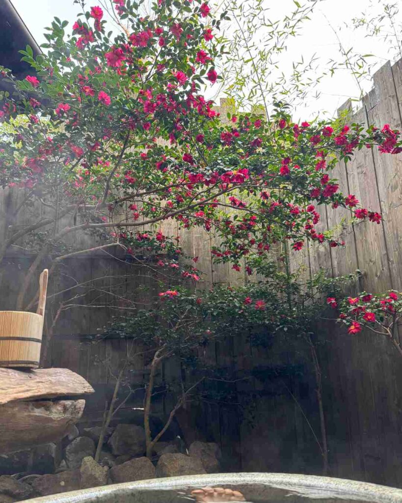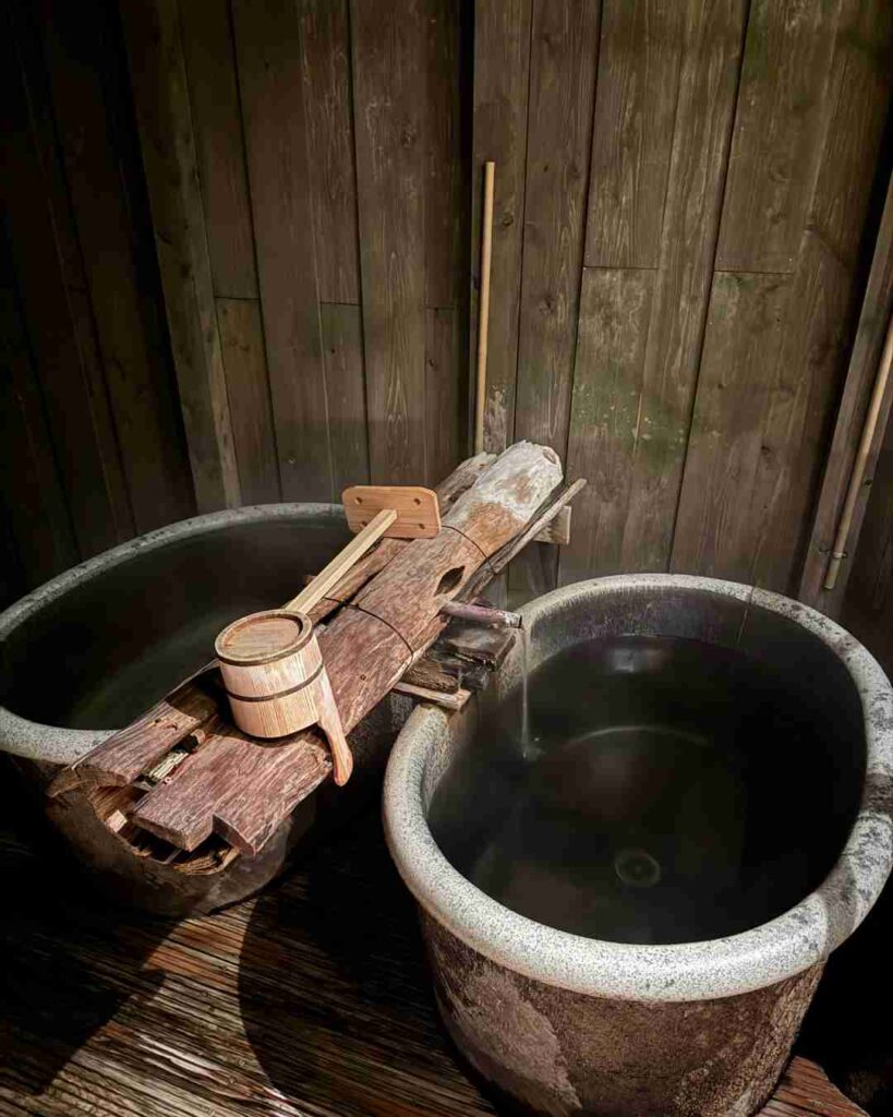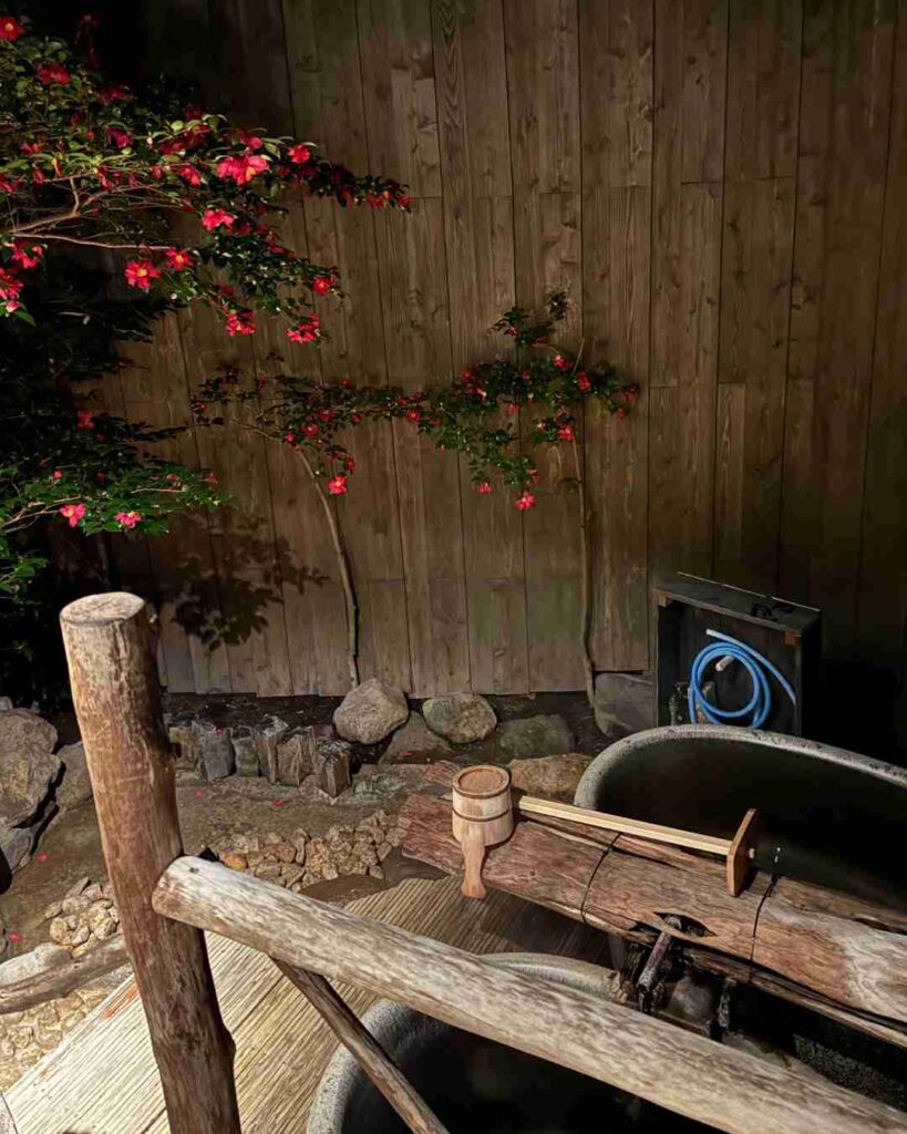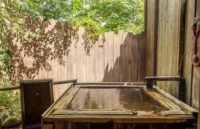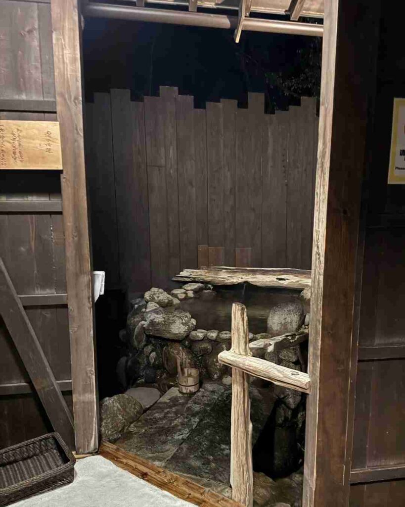 中は湯船だけでシャワーや洗い場はございませんので、お部屋や大浴場で体を清めてから行くことをお勧めします。