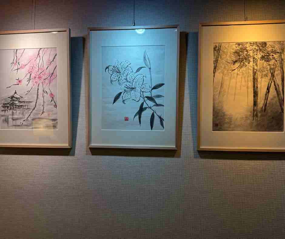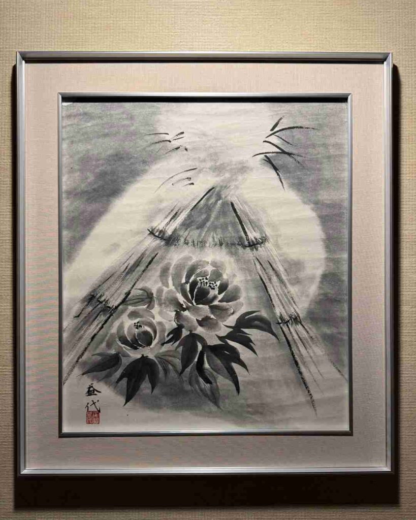 一番心に刺さった作品はこちらです。美しい水墨画は、牡丹でしょうか?牡丹は古来より、その圧倒的な美しさと品格から”花王(かおう)””富貴花(ふうき)”と呼ばれています。