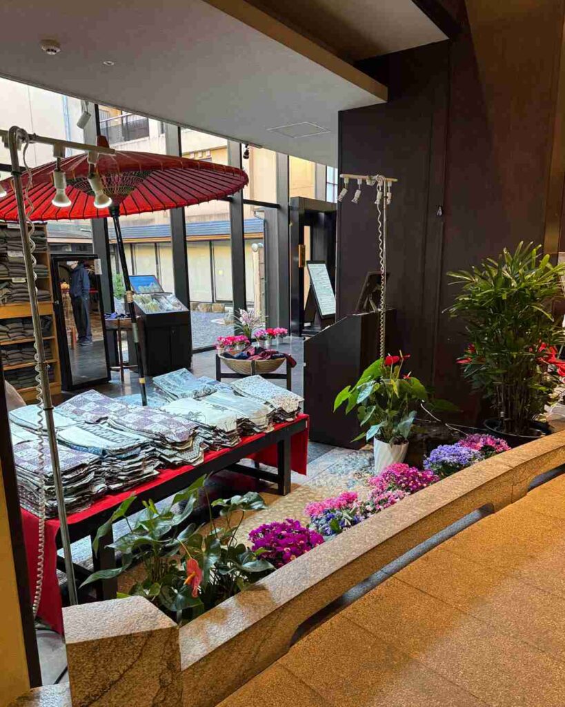 こちらは無料の色浴衣、嬉しいサービスですよね。お部屋には作務衣が準備されていますが、浴衣の方が気分が上がりますよね!