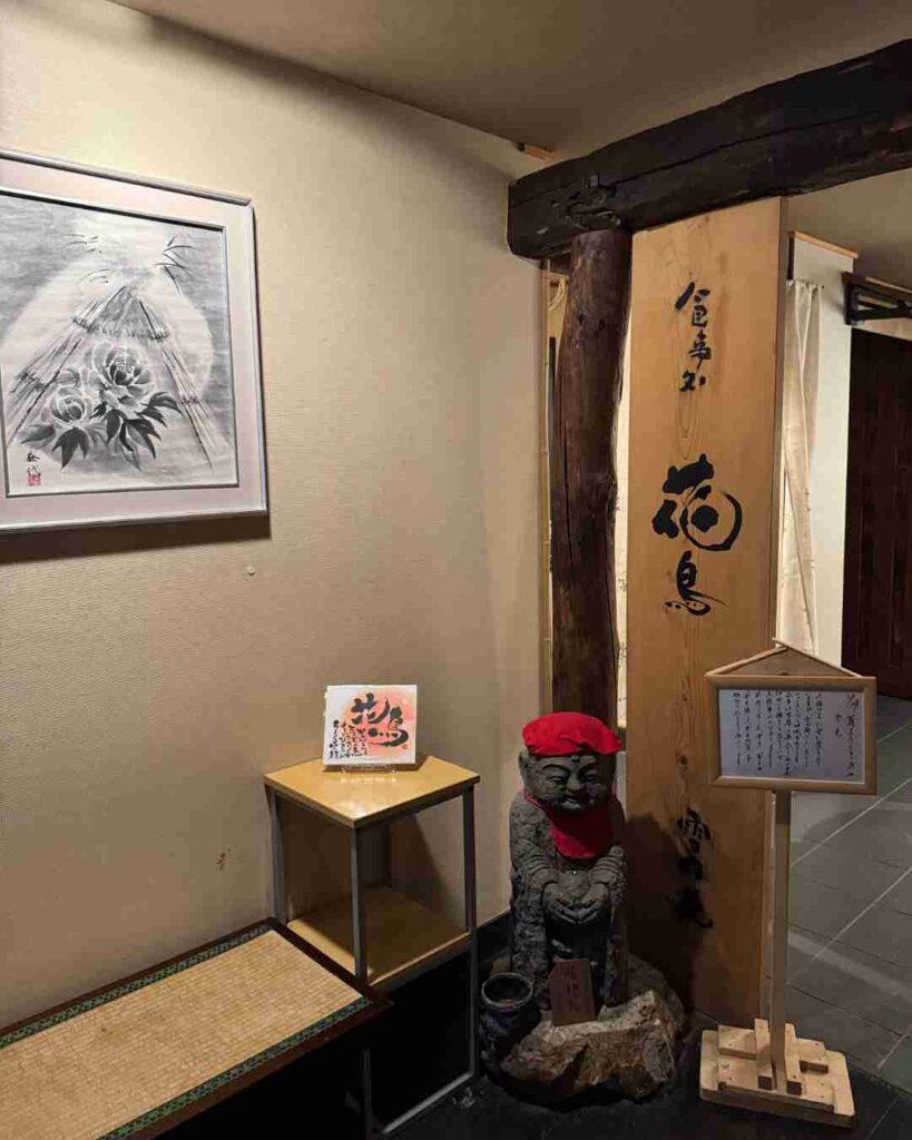 こちらはお食事どころの入り口です。独特のやわらかい筆致と、お地蔵さまの表情がリンクしていて、見ているだけでほっこりなりますよね?