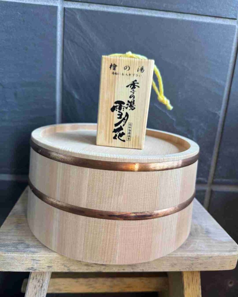 中は檜のお風呂と小さな陶器のお風呂がありました。炭酸泉?ははっきり分かりませんでしたが、お湯の温度が一番快適でした。10人分くらいしか入れない感じなので、タイミングを見計らって!
