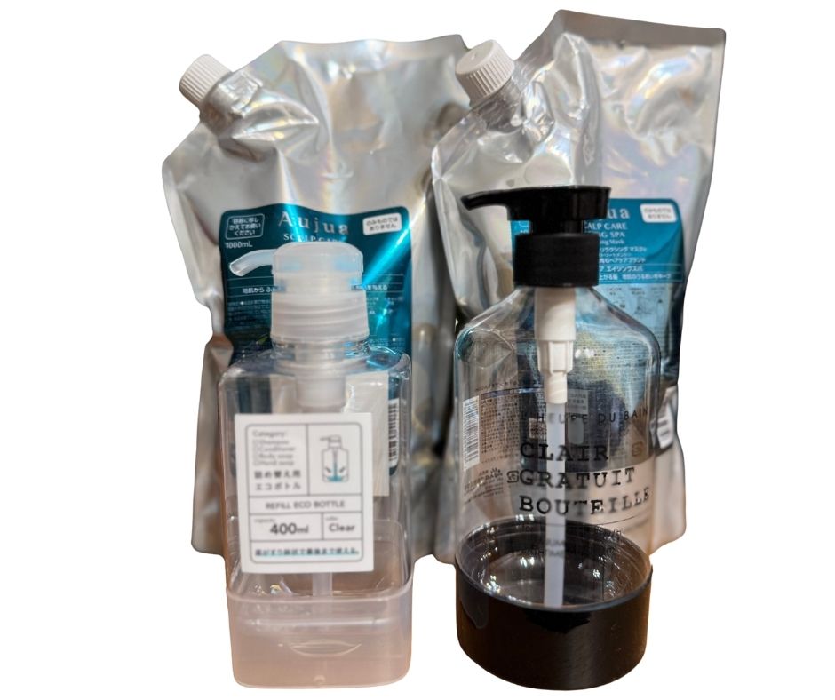 そうなると、詰め替え用のボトルが必要です!そこで100均へ行ってみました。今は、『底がすり鉢上で最後まで使える』ボトルがあるんですね!中身が見えるタイプを購入!!