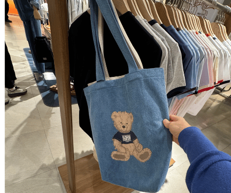 人気のロゴトートバッグ。くまちゃんが可愛すぎて!3色展開でしたが、シックな黒にしました。こちらは定価商品39,000ウォンでしたが、タックスリファンド2,000ウォン。