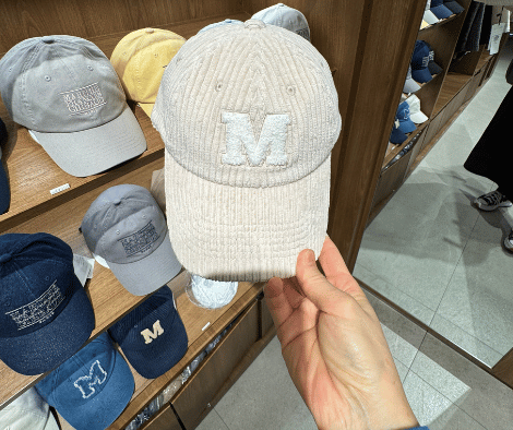 マリテ・フランソワ・ジルボーのロゴは、大きくてもデザインの一部として上品に溶け込みます。色々な素材と彩りが楽しめるキャップ。49,000ウォン〜こちらの白のキャップは59,000ウォン。