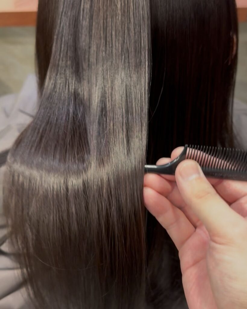 今回は、SNSでも話題の髪質改善 メテオカラー を体験してみました!カット&メテオカラーで12900円と少々お値段が高いので躊躇したのですが・・・このツヤ感✨✨メテオカラーが最強かも?この”つや髪”が手に入るならやる価値ありではないですか?
