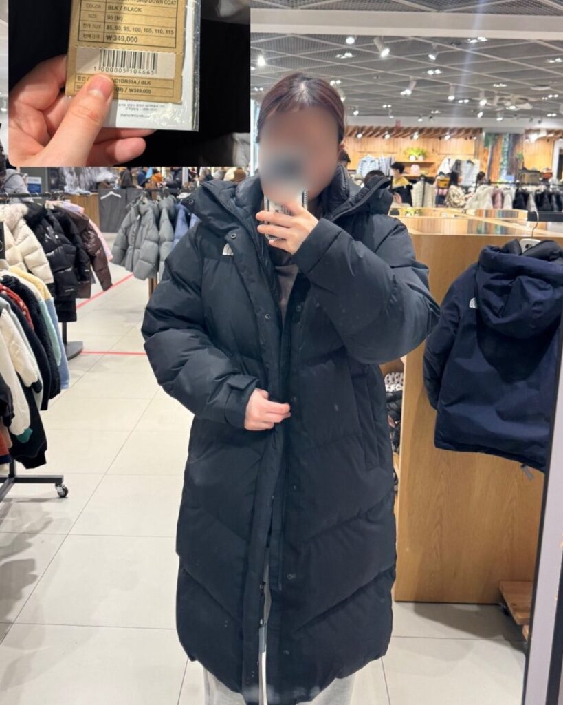2月に渡韓したくて購入しました。エコダウンで、撥水加工・軽量・通気性・保温性・洗濯機可能です!同じような形でホワイトレーベルの物もありましたが、こちらの方が高機能そうで決めちゃいました。ホワイトレーベルのものはW390,000くらいでした。
