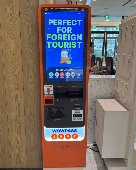 入り口入ってすぐの右手にWOWPASSがあります!レートは、1万円が940,000ウォンでした