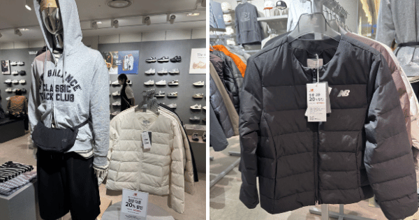 ユニセックスで男女問わず着用できます。左;duckダウンジャケット 119,000→99,000ウォン右;ライトジャケット89,000ウォン