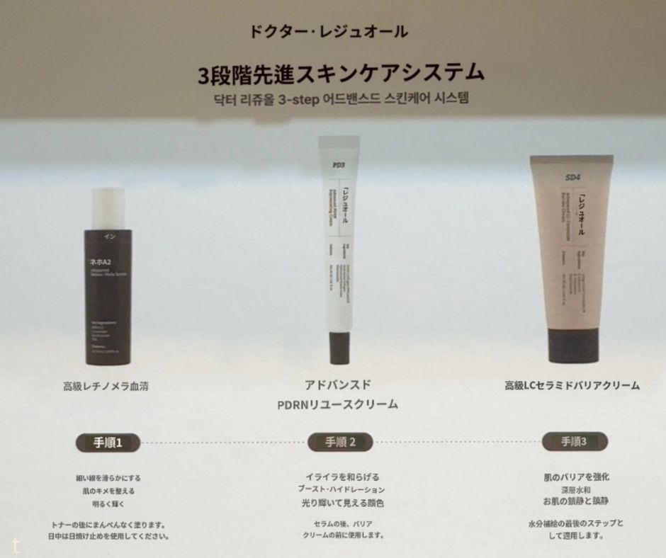 リジュオールは、エイジングケアに特化したシリーズで『あらゆるダメージから若返る』という意味で、韓国のビューティークリニックと薬局のみで購入できるプレミアムビューティースキンケアブランドです。