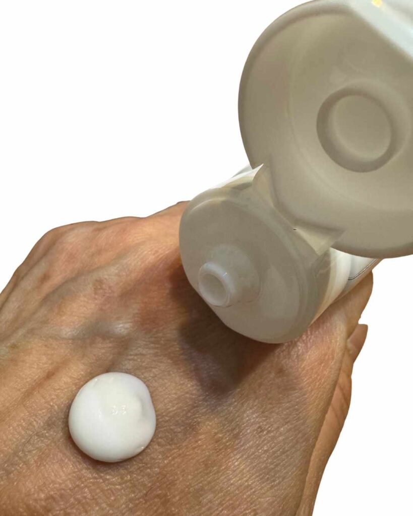 毎晩セラム後に適量を肌にやさしくのばして塗ります。朝の使用時には十分に吸収させてからメイクをします。