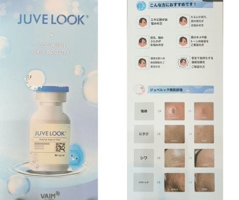 ジュベルックは、P(D L)LA ポリ乳酸とHA成分=非架橋ヒアルロン酸で、自己コラーゲン生成を促進させるコラーゲン生成製品です(医療機器4級の医療用製品)