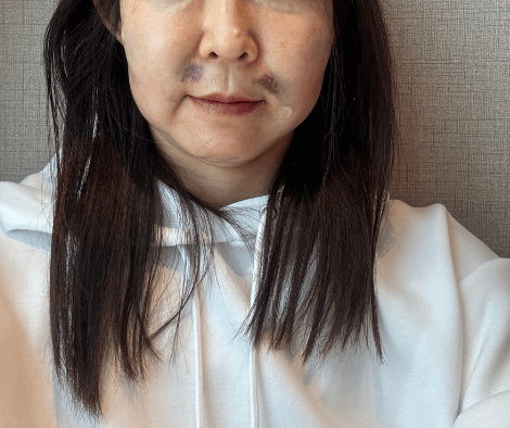 施術直後は、顔は痛いし、ひどい顔だし、家族には毎日笑われるし・・・後悔の嵐でした。まずは、『やりすぎ』多ことに後悔しました。『悩みがたくさんあり、そうそう韓国で治療できないからと』欲張って2箇所の美容外科にて施術したことが、ひどいダウンタイムを招き、ダウンタイムを長引かせた原因の一つであったと思います。