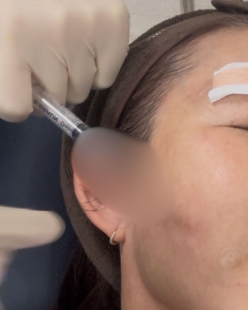 ほうれい線と小鼻のあたりに麻酔の注射