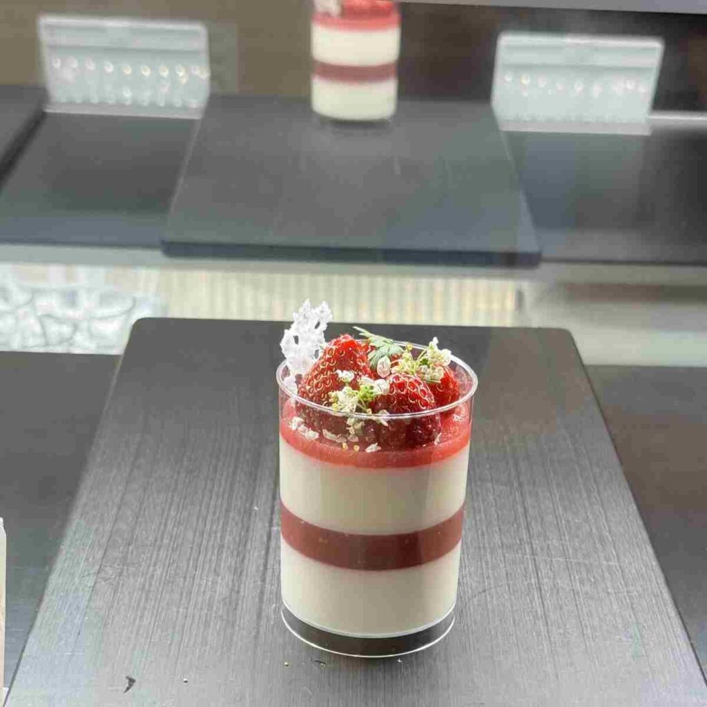 いちごの甘味と酸味、杏仁豆腐とのバランスを考えて作られた蔭山樓イチオシのデザートです!厳選された完熟苺をピューレにしたものを使用して作られているそうです!